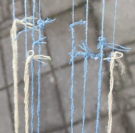 (For sake of clarity: I talk about ‘Iron Age Swivels’ in a casual way. It is not a technique that is based on an archeological find. It is a technique I use to achieve the result of ‘a band without turns of direction’, without the use of modern means like iron swivels. So it is a ‘sticks and string’ technique based on the principle that twist travels to the thinnest point).